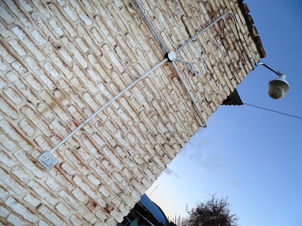 instalación eléctrica y luminarias del pasillo de entrada, patio parroquial,